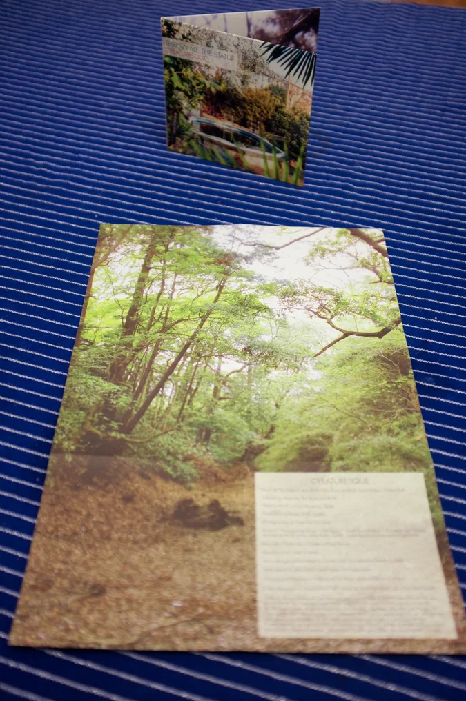 The photos I picked were intentionally suggestive of a jungle, of something mysterious and exciting; where creatures might live, or perhaps where a party had recently ended. The album was a bit more grown up than the first in its lyrical perspective, and so this felt like a strong direction in which to take the imagery. The photos as a whole presented a cryptic, collective meaning, depicting images of a totem pole in Washington State, a deserted pool in Switzerland, a forest in Kyoto, a hotel in Acapulco, and an abandoned vacation home in Guam.